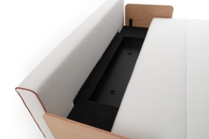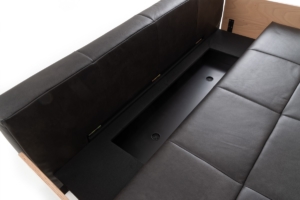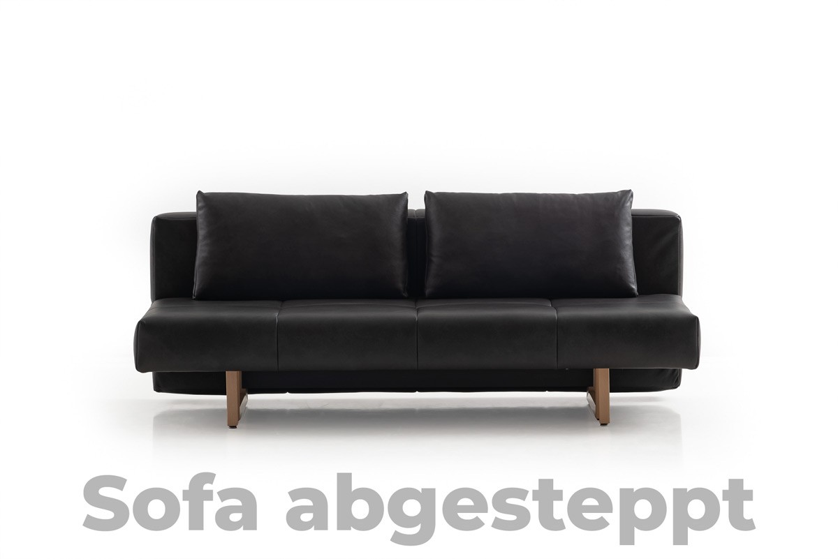 Das Sofa lässt sich zum Querschläfer umklappen. Das Sofa hat einen integrierten Bettkasten.