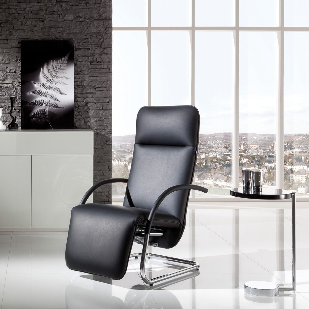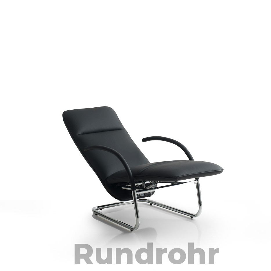 Relaxsessel FINO in den Gestellvarianten Rundrohrfreischwinger oder Flachstahlfreischwinger. Hier im Webshop in der Lederausführung.