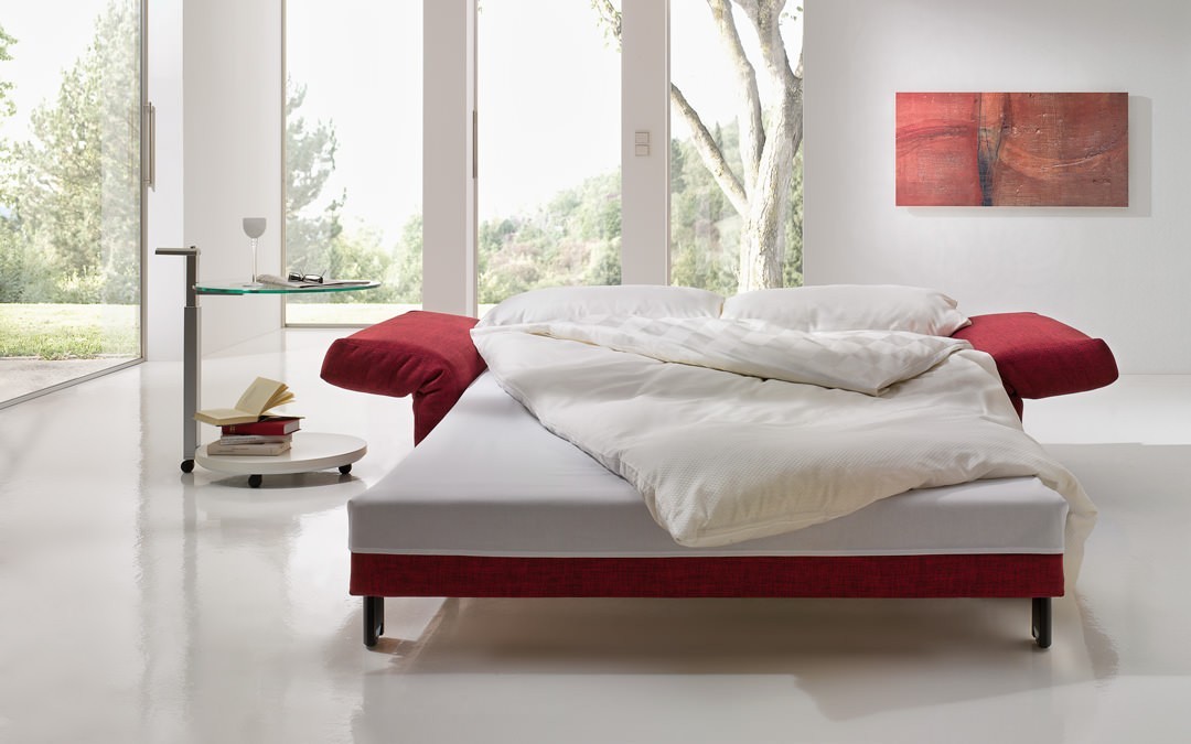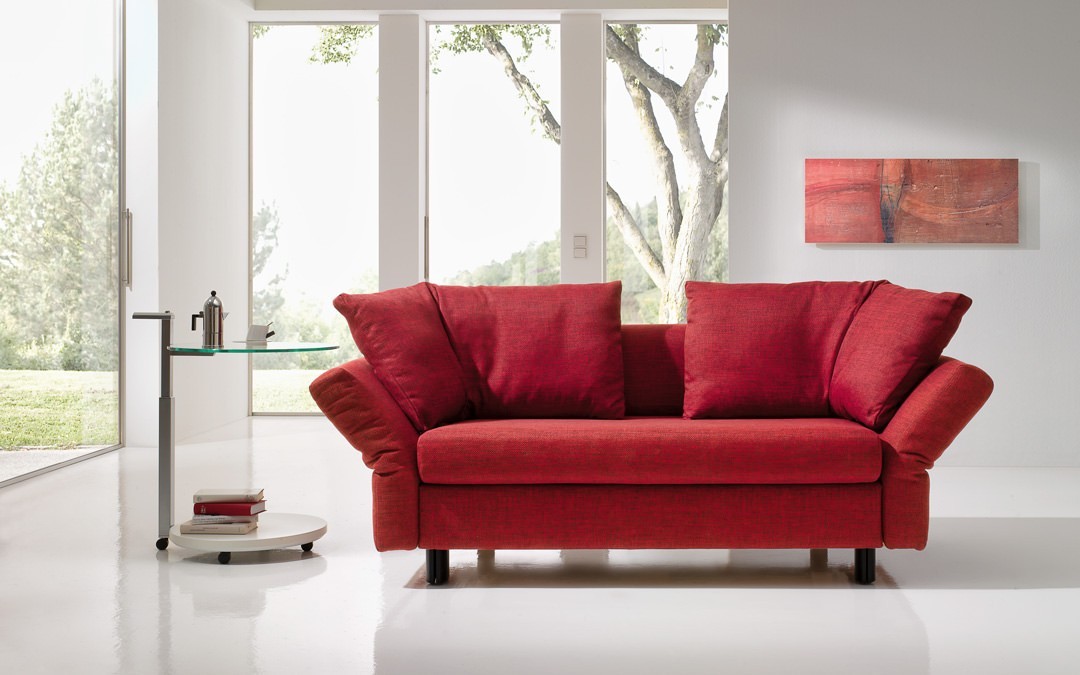 Schlafsofa MALOU in den Sitzbreiten 130 oder 150 cm, mit Sitztiefenverstellung, Fuß rund-oval, inkl. 2 Rückenkissen.