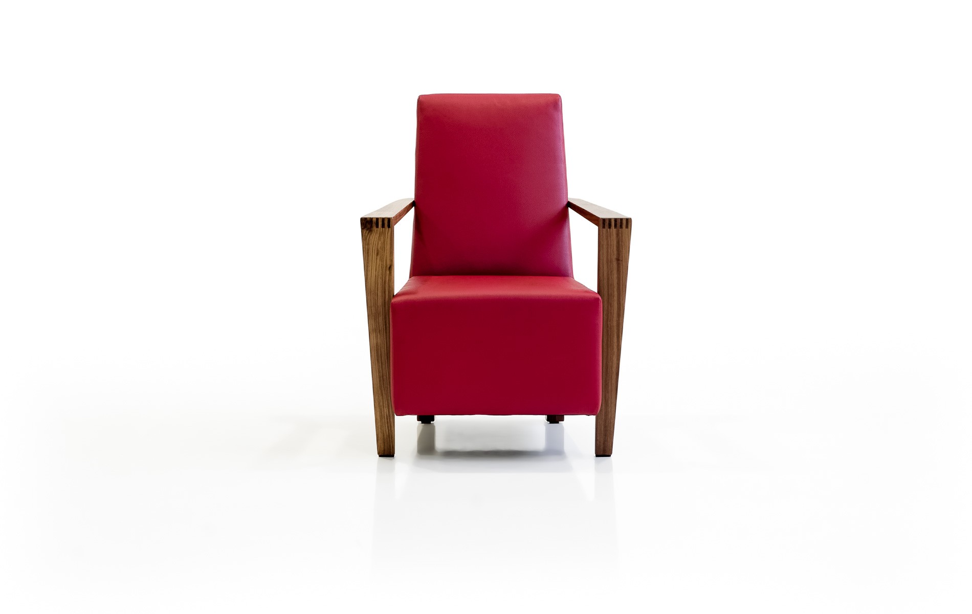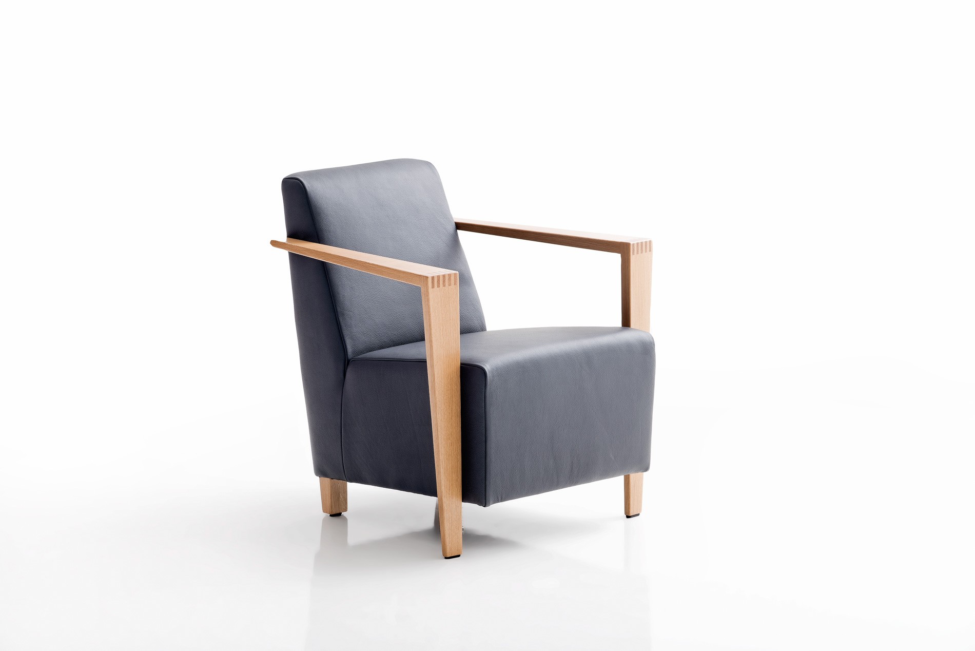 Armlehnen aus massivem Buchenholz. Gegen Mehrpreis sind die Armlehnen auch aus massivem Eichenholz (FAH306) erhältlich. Gestell als Rahmenkonstruktion aus Buchenholz und Plattenmaterialien aus Holzwerkstoffen.