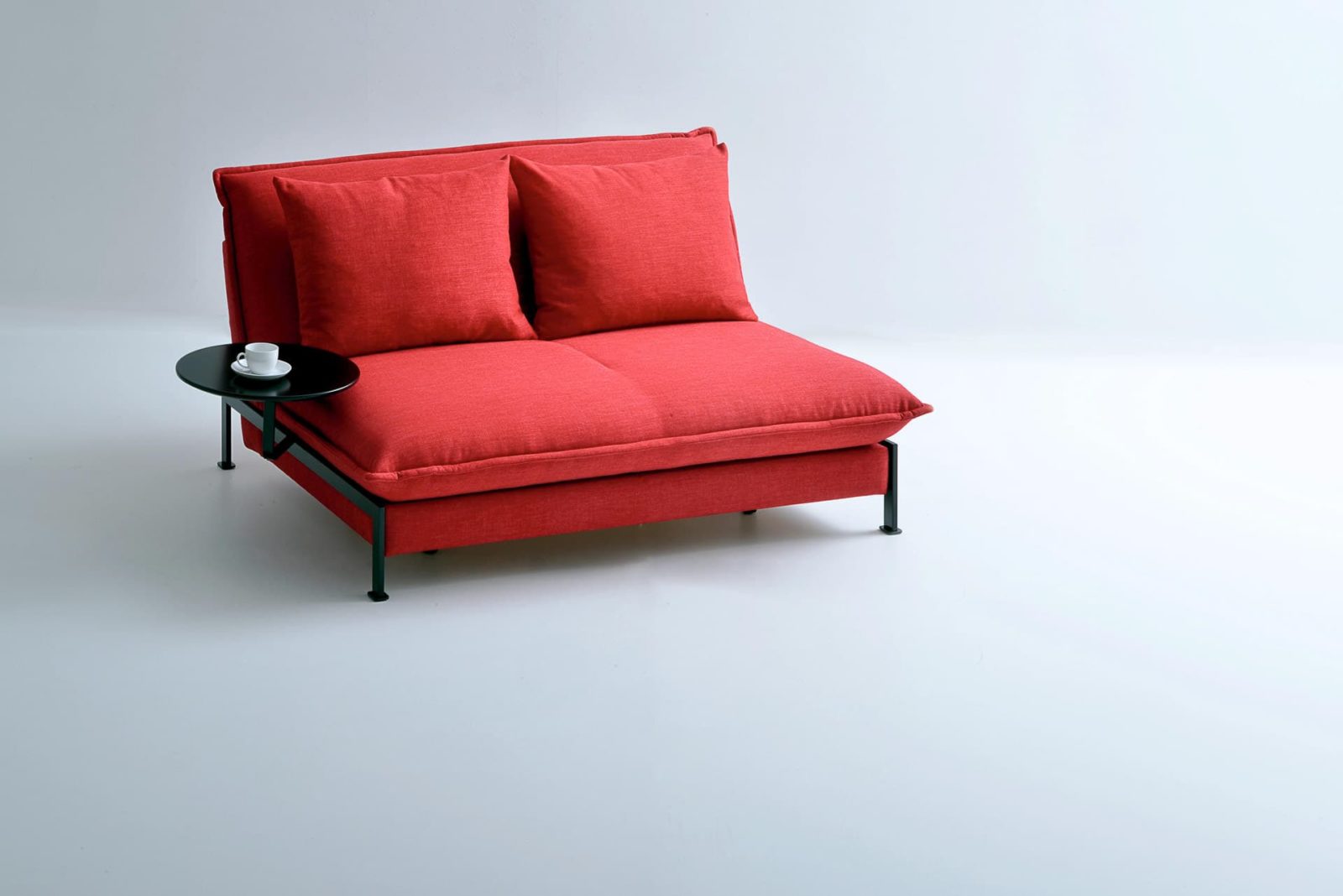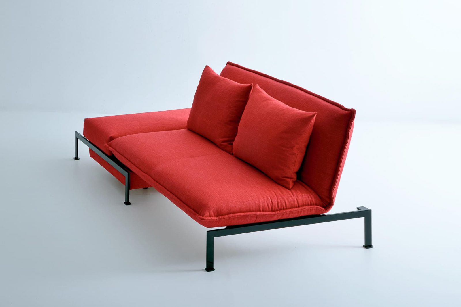 Das Sofa FUN bietet mit seiner außergewöhnlichen Verwandlungstechnik die Möglichkeit für überraschend andere Raumerlebnisse: kompakt als Sofa lässt sich FUN dank des drehbaren Sitzelementes und der klappbaren Rückenlehnen im Nu zu einer Relaxinsel der etwas anderen Art oder zu einem bequemen Bett auf normaler Liegehöhe verwandeln. Das schwenkbare Sitz- und Rückenpolster ist in Form eines Kissens gearbeitet und sorgt für kuscheligen Komfort. FUN gibt es mit einem leichten bodenfreien Untergestell aus schwarz beschichtetem Metall oder für alle, die die Möglichkeit eines Stauraums schätzen, in der bodentiefen Variante mit Bettkasten. Mit FUN macht Sitzen, Relaxen und Schlafen einfach Spaß.