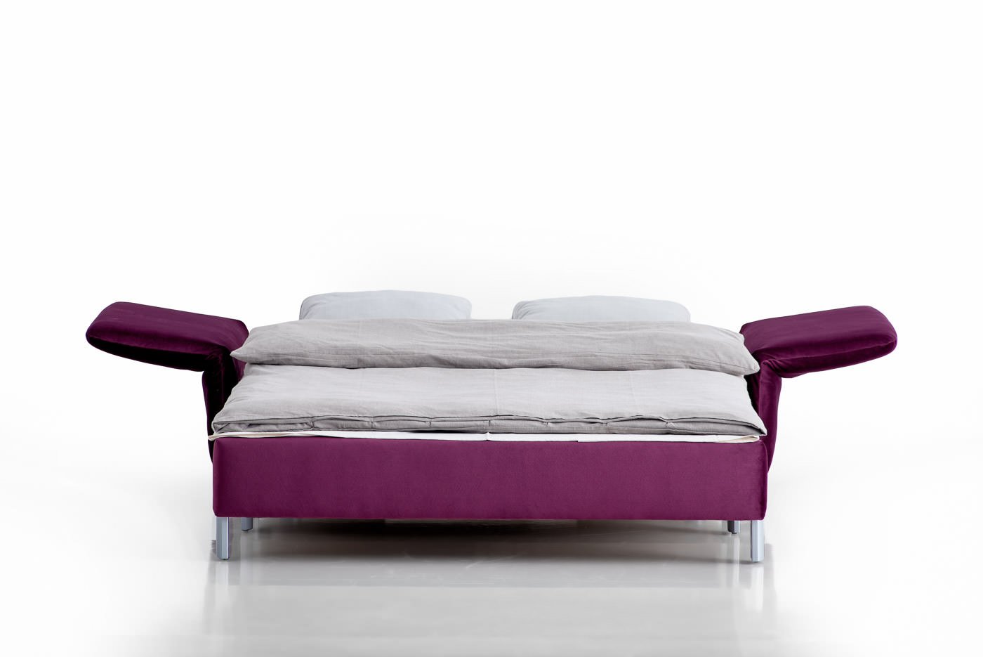 LUINO überzeugt durch sein Design und seine Verwandlungstechnik. Die grazilen Armlehnen ergeben mit ihrem sanften Schwung in Verbindung mit den Rückenkissen eine stimmige Komposition. Das Sofa ist in den zwei Sitzbreiten 130cm und 150cm erhältlich und es stehen drei Kissenvarianten zur Wahl. Die geraden nach oben schräg zulaufenden Kissen folgen dem Schwung der Armlehne und unterstreichen den eleganten Gesamteindruck des Modells. Die Winkelspitzkissen machen aus dem Sofa einen kuscheligen Begleiter und laden zum Lümmeln ein. Zum Bett verwandeln läßt sich das Modell dank des Teleskopauszuges aus massivem Buchenholz ganz einfach. Zusätzliche Optionen sind die Kaltschaumpolsterung der Sitzfläche, abnehmbare Bezüge oder ein integrierter Bettkasten.